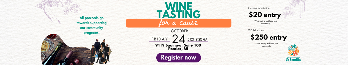 Join us this Friday, October 24 from 5:00 to 8:30 pm at Centro Multicultural la Familia 91 N Saginaw, Pontiac, MI, for a special evening together.